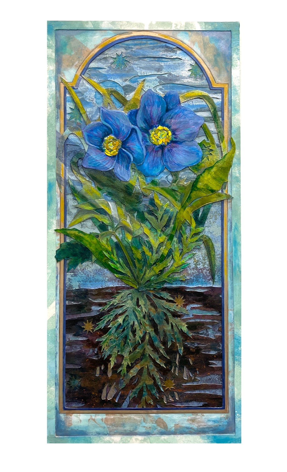 “Midsummer- Never Again Will Life End”, 18 x 24, Mixed Media Collage on Panel, 2024