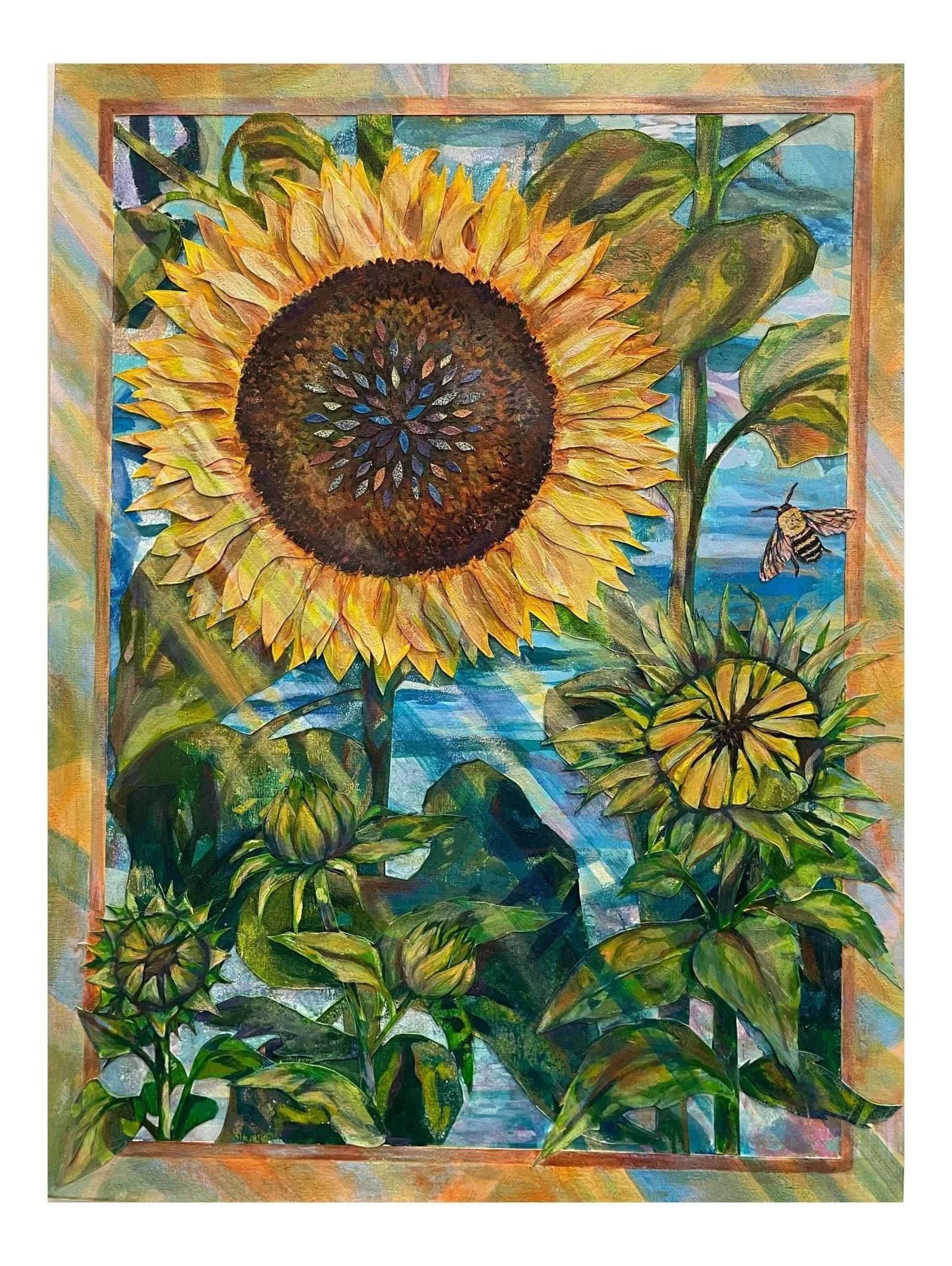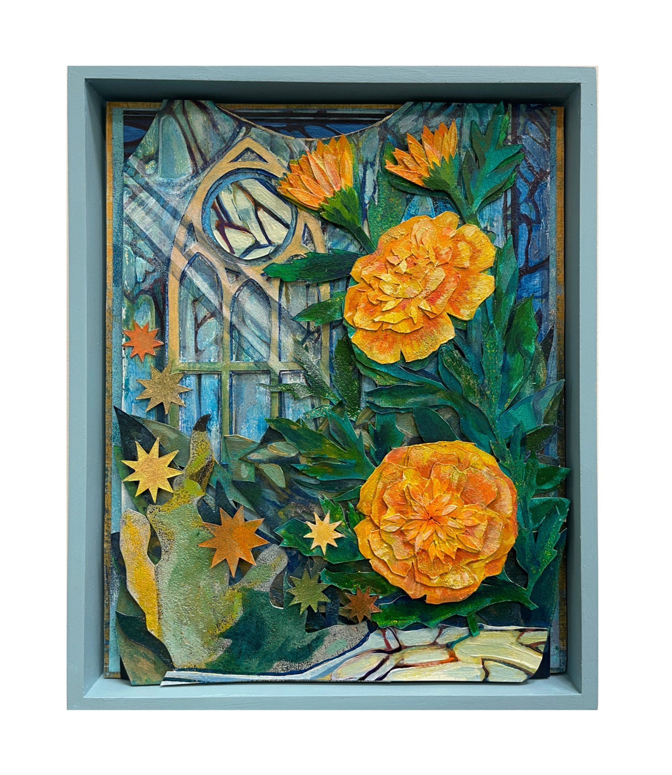 “Three Rays of Light”, 8 X 10, Mixed Media Collage, 2024. SOLD