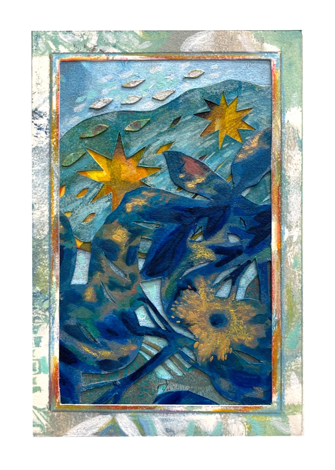 “Secrets and Stars”, 5 X 7, Mixed Media Collage, 2024. SOLD